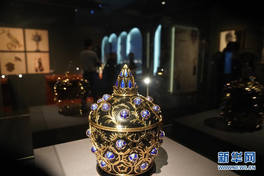 这是展出的装饰品(5月30日摄)。 5月30日,由中国国家博物馆和美国弗吉尼亚美术馆共同主办的“云鬓珠翠——弗吉尼亚美术馆藏二十世纪珍宝艺术展”在北京中国国家博物馆开幕,美国弗吉尼亚美术馆珍藏的123件20世纪珠宝艺术珍品和中国国家博物馆特意遴选的11件(套)馆藏文物与观众见面。 新华社记者 金良快 摄