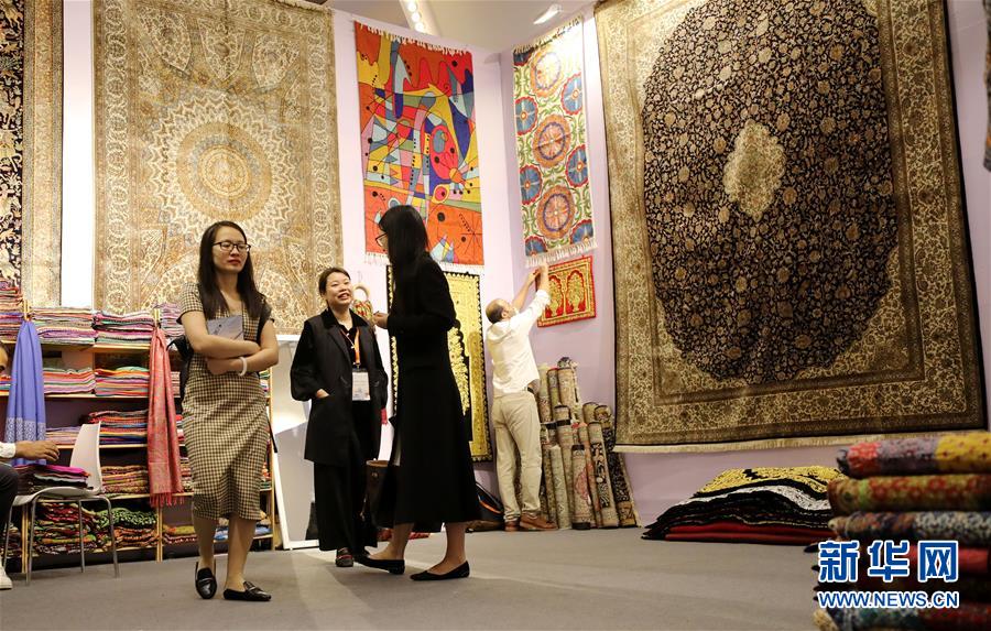 5月31日,参观者在一家地毯厂商的展位参观。 当日,以 “品质生活 携手共创”为主题的“2019一带一路名品展·上海”在上海展览中心开幕。 新华社记者 方喆 摄