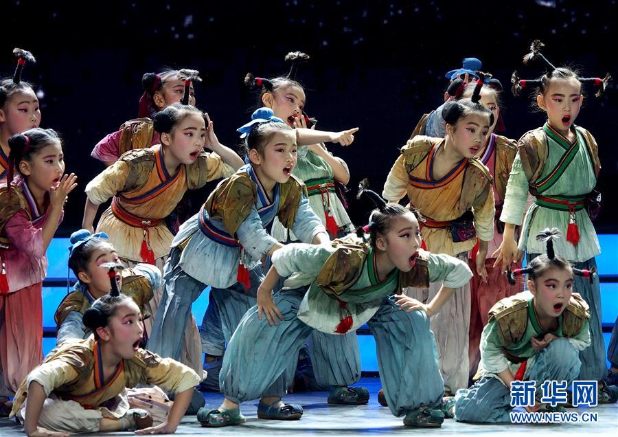 5月31日晚,演员在颁奖晚会现场表演群舞《击壤歌》。 当晚,第十八届群星奖颁奖晚会在上海东方艺术中心举行。 新华社记者 任珑 摄
