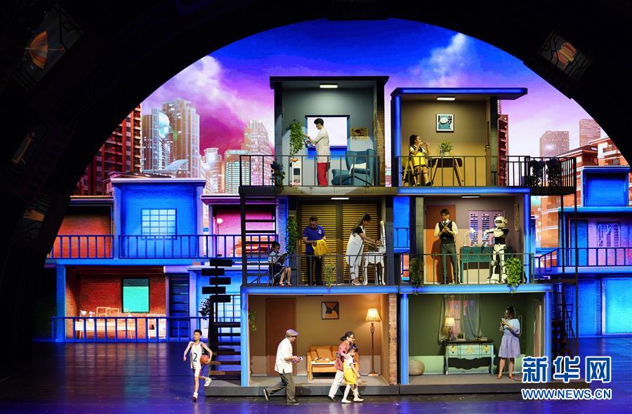 5月31日,演员在进行情景表演《街头即景——上学路上》。 当日,由中国宋庆龄基金会、中国福利会、国家大剧院共同主办的“我和祖国一起成长”——2019年“六一”国际儿童节主题演出活动在北京国家大剧院上演。 新华社记者 金良快 摄