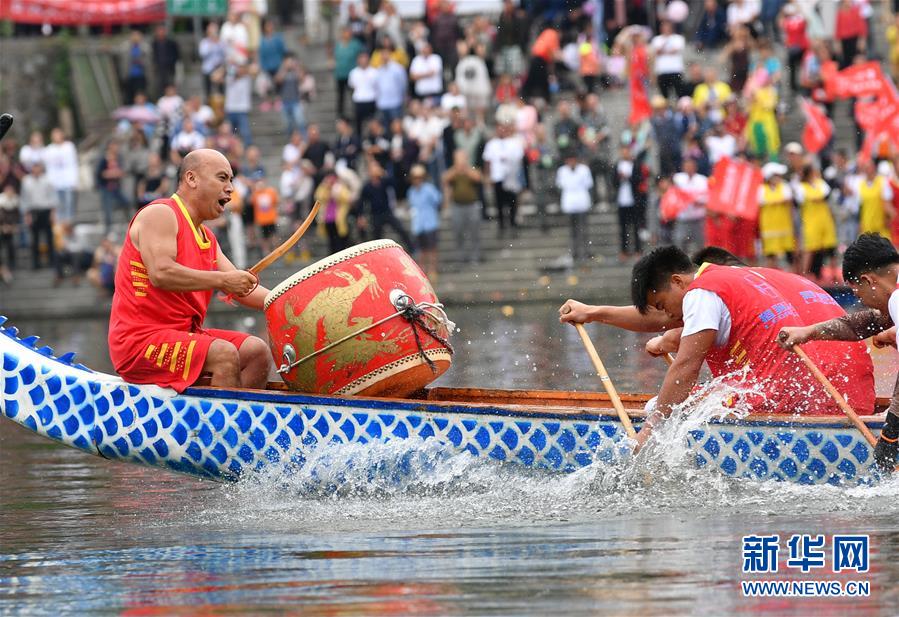 6月1日,人们在重庆市秀山土家族苗族自治县大溪乡进行龙舟赛。 端午节临近,多地举行龙舟赛喜迎端午。 新华社发(龙恩泽 摄)