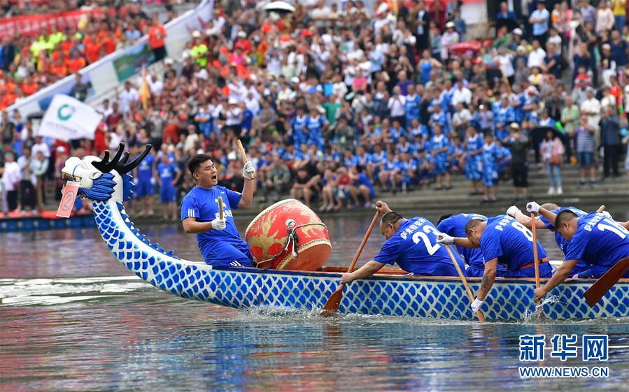 6月1日,人们在重庆市秀山土家族苗族自治县大溪乡进行龙舟赛。 端午节临近,多地举行龙舟赛喜迎端午。 新华社发(龙恩泽 摄)