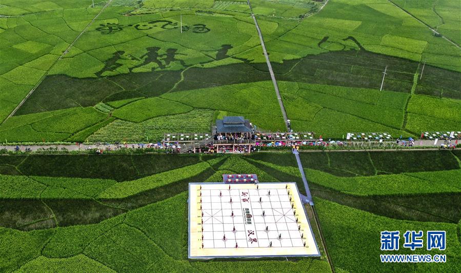 6月2日,小学生们在德庆县悦城镇罗洪村连片稻田里的“大地棋盘”上进行象棋博弈,吸引游人观看(无人机拍摄)。 近年来,广东德庆县以推动南粤古驿道文化之旅为着力点,利用丰富的历史古迹资源、非物质文化遗产及自然资源,开展丰富多彩的文旅活动,让游客感受岭南特色的华夏文明传承之路。 新华社记者 陶明 摄