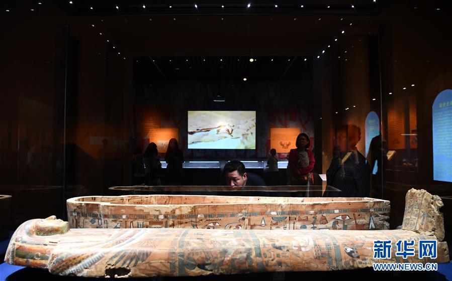 6月4日,观众在天津博物馆参观彩绘人形棺。 近期,“法老的国度——古埃及文明展”在天津博物馆持续受到观众热捧,参观者络绎不绝。据了解,本次展览集结了木乃伊、彩绘人形棺等近180件套珍贵藏品,展览将持续到8月18日。 新华社记者 李然 摄