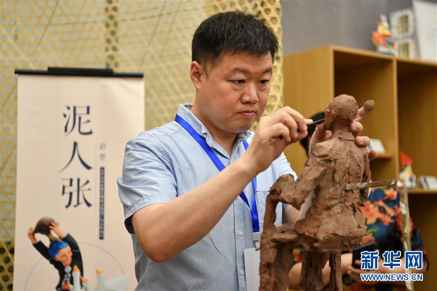6月5日,在天津美术馆,非遗传承人现场展示泥人张彩塑技艺。 当日,第五届京津冀非物质文化遗产联展在天津美术馆拉开帷幕。 新华社记者李然摄
