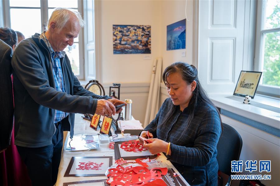 6月3日,在瑞典斯德哥尔摩,瑞典民众在“中国旅游文化周——美好安徽”活动上欣赏剪纸。 “中国旅游文化周——美好安徽”活动3日至7日在瑞典首都斯德哥尔摩举办,吸引了众多当地民众前来观看并参与互动。 新华社发(魏学超摄)