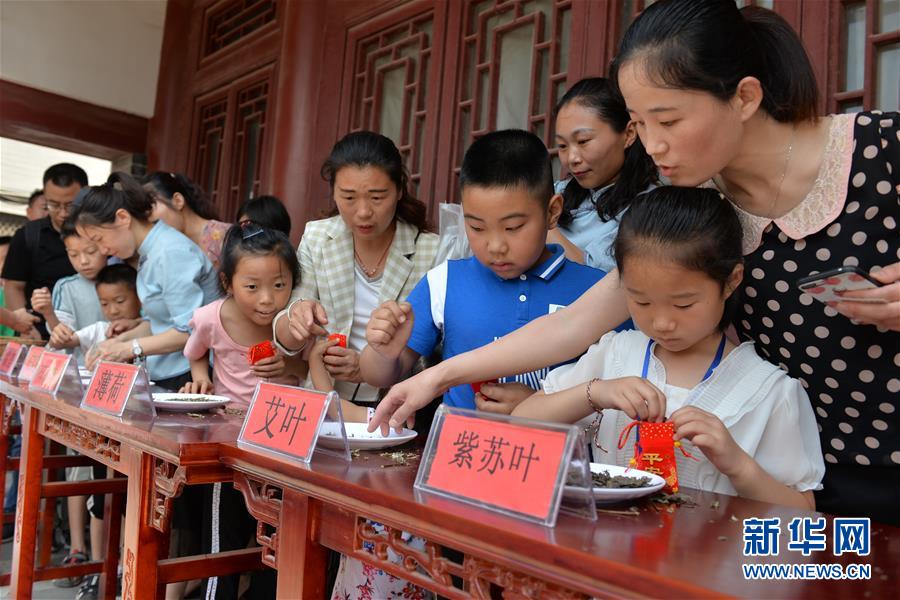 6月7日,小朋友在山东聊城海源阁体验制香囊。新华社发(孔晓政摄)
