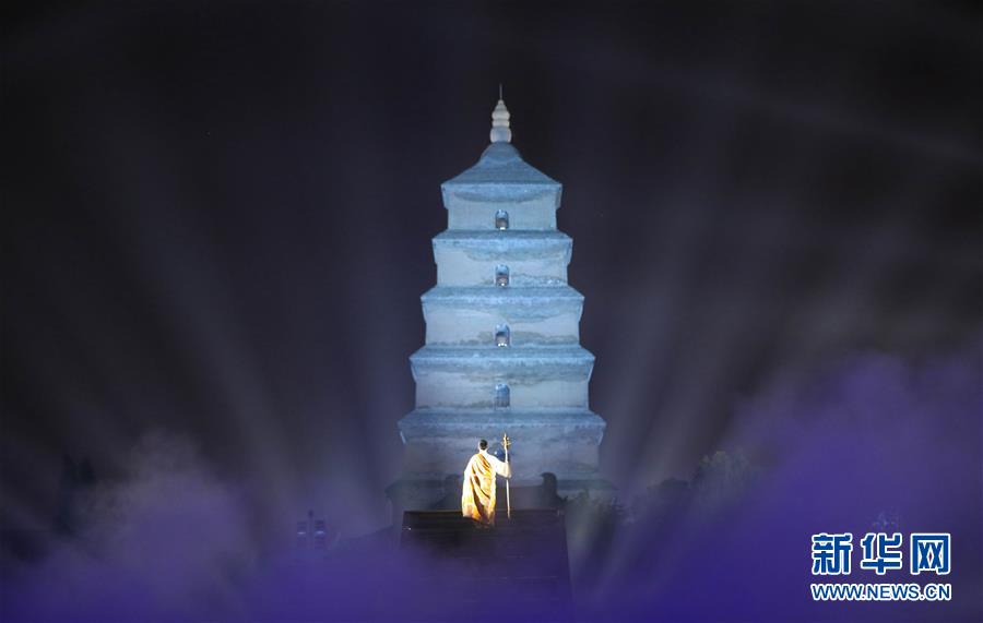 6月9日,演员在大型实景舞台剧《再回大雁塔》中表演。