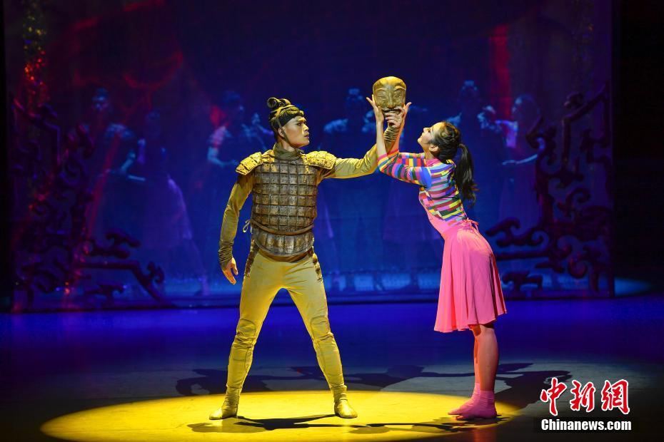 6月9日晚,中国东方演艺集团新作“大型音舞诗画系列《美丽中国》——古风国韵”(以下简称《美丽中国》)惠民演出活动在海口上演。《美丽中国》回溯中华文化之根,以“中国”一词最早出现的西周何尊铭文为舞台视觉形象,向中国历史上繁荣昌盛的朝代寻求创作素材,从周、秦、汉、唐的历代礼仪风范、国韵奇珍中汲取艺术灵感,以音乐、舞蹈、情景表演等多种形式予以呈现。这部融汇中华气韵、巡礼璀璨文化的作品将为观众描绘出美丽中国令人震撼的千古神话。中新社记者 骆云飞 摄