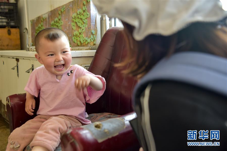 来到客栈的游客与迪尔达什·木提的小孙子互动(6月6日摄)。 新华社记者 丁磊 摄