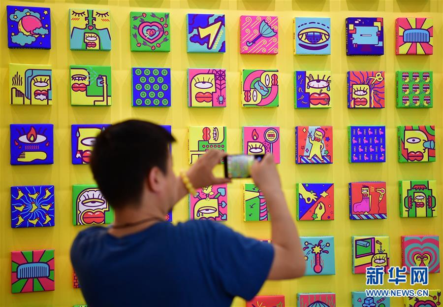 6月10日,观众在西安美术学院设计艺术学院学生的毕业作品前拍照。 在西安美术学院建校70周年之际,该校2019“时空留痕”本科毕业季展览6月10日在校内开幕。展览共展出5000余件毕业作品,集中展示学校的教学成果和学生风采。 新华社记者 邵瑞 摄