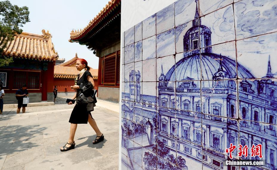 6月11日,“釉彩国度——葡萄牙瓷板画500年”展在北京故宫博物院永寿宫拉开帷幕。这是故宫博物院首次与葡萄牙国立瓷板画博物馆合作举办的展览,共展出16世纪至21世纪50余幅葡萄牙瓷板画精品。由于每幅瓷板画都是由数块瓷板拼接而成,因此,用于本次展览的瓷板多达5000块左右。本次展览展品贯穿葡萄牙瓷板画500余年历史,通过不同时代的作品,观众可以看到瓷板画风格的变迁。中新社记者 杜洋 摄