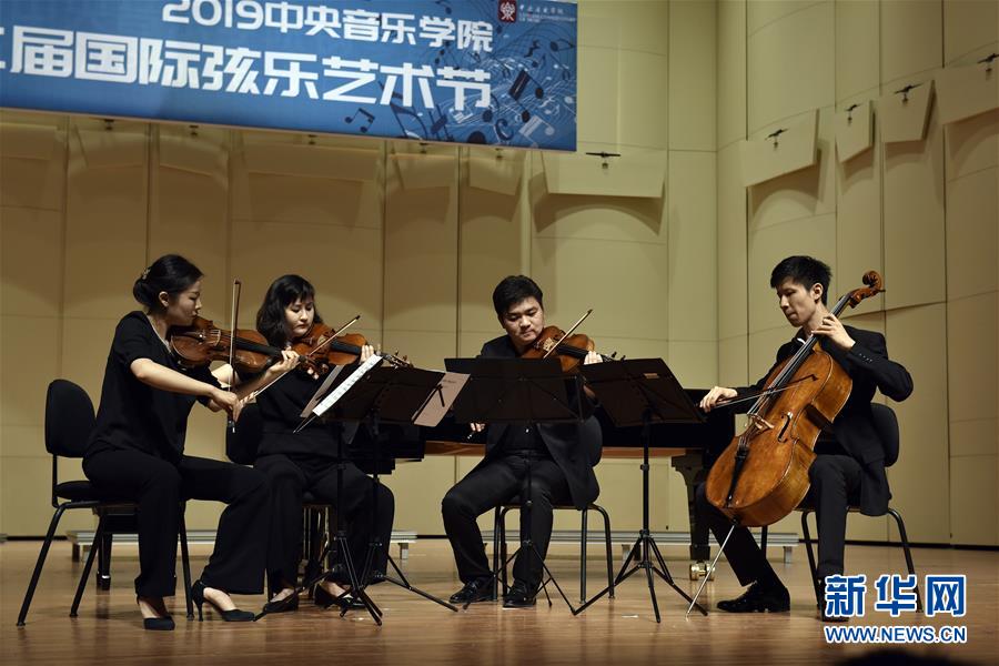 6月11日,艺术家在开幕式音乐会上演奏。 当日,2019中央音乐学院第二届国际弦乐艺术节开幕式音乐会在北京举行。本次国际弦乐艺术节邀请来自世界各地著名演奏家、教育家参与其中,计划举办四场音乐会和多场大师班及讲座。 新华社记者 金良快 摄