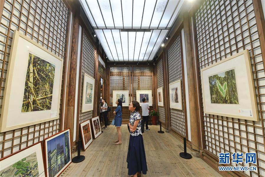 6月12日,在福建省海峡民间艺术馆,参观者在欣赏松溪版画。 当日,以“生态家园”为主题的福建松溪版画作品展在福州开展。展览由福建省美术家协会、松溪县人民政府共同主办,展示松溪县近年在群众间推广版画创作的成果。新华社记者 宋为伟 摄