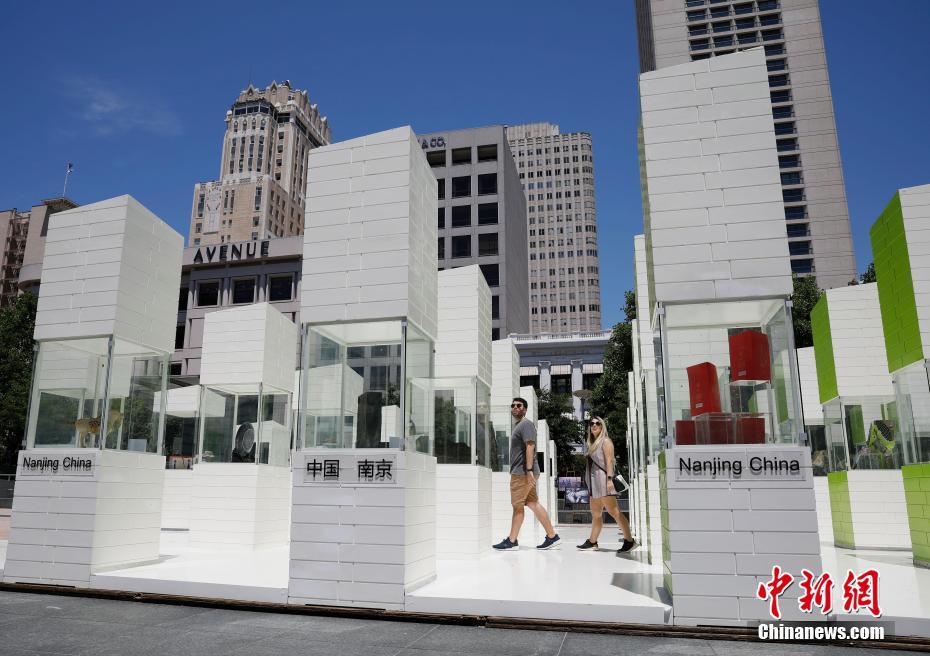 当地时间6月12日,2019中国南京创新周“融合之光”展览开幕仪式在旧金山联合广场举行。展览围绕文化与科技融合的主题,以明城墙与秦淮花灯为主要元素,运用现代艺术装置,全角度地展现南京的历史文脉、人文精神以及创意活力。 中新社记者 刘关关 摄