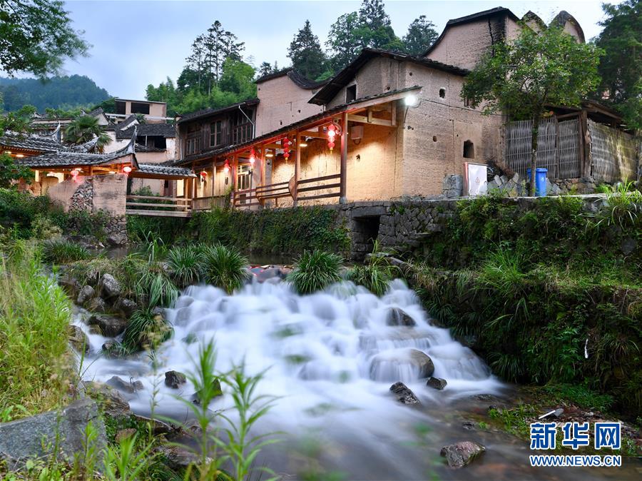 龙潭村清澈的西溪与修复后的古民居(6月11日摄)。 新华社记者 姜克红 摄