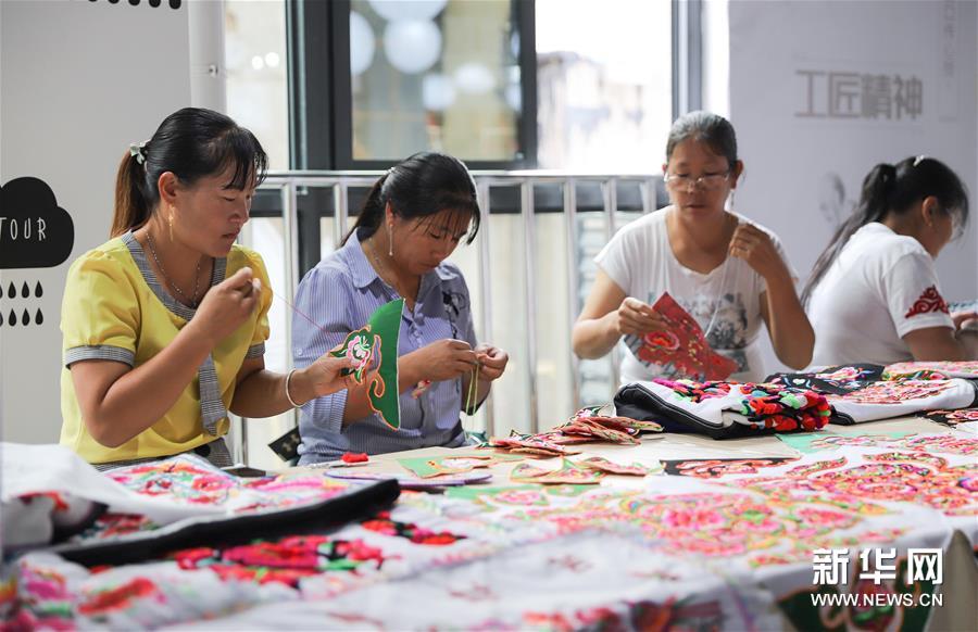 6月16日,在会东县金江文化创意产业园里,几名绣娘正在刺绣。 近日,四川省凉山彝族自治州会东县金江文化创意产业园开园。这座集孵化、服务、推广、研发于一体的文化创意产业园由县城的老建筑“老电影院”改造而成,建筑面积1万余平方米,包含创意设计服务、文创企业孵化、新媒体推广和文创产品研发等四大平台,致力于本土传统手工艺品、非遗文化、旅游资源的挖掘和融合等。 新华社记者 江宏景 摄