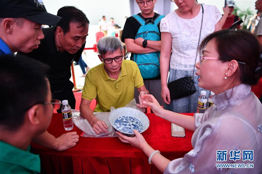 6月16日,文物鉴定专家在海南省博物馆开展鉴宝服务。