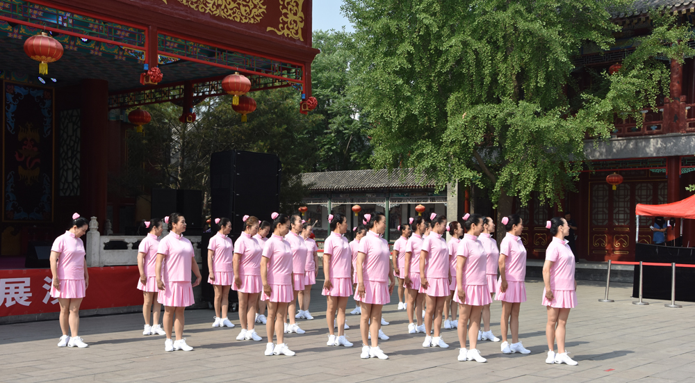 6月18日,2019年北京市西城区第二文化馆原创广场舞活动“舞动新时代 追梦新征程”在北京市大观园展演。(主办方供图 潘振斌摄)
