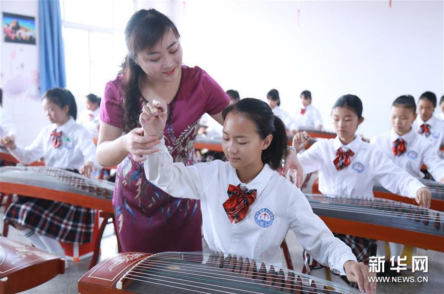 6月19日,河北省邢台市第五中学古筝社团的老师带领学生们练习古筝。 河北省邢台市第五中学把非遗传承与学校社团活动有机结合,开设多项非遗课程,让学生们在社团活动中学习、传承非遗技艺,感受传统文化魅力。 新华社发(张驰 摄)