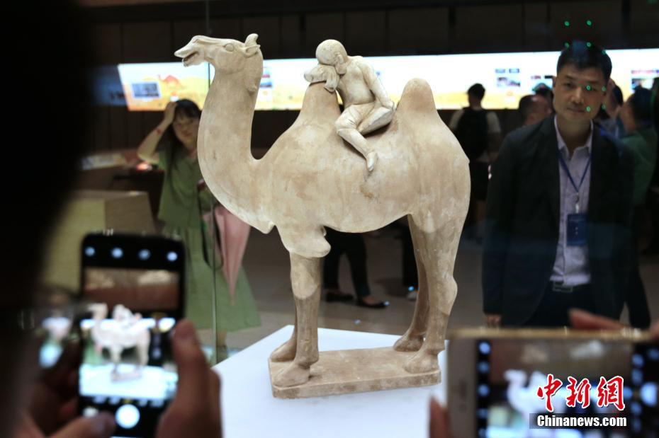 6月20日,西安,“丝路追梦——陕西国宝系列特展之骑驼胡人小憩俑”在陕西历史博物馆国宝厅面向公众开放。据介绍,此次展出的这件骑驼胡人小憩俑是已发现的众多骆驼俑之中形象最为生动的一件,它表现了骆驼在漫漫丝路上长途跋涉,于疲惫之中抖擞精神、驻足嘶鸣,而驼背上的“胡儿”怀揣梦想、枕臂小憩、憨态可掬的生动瞬间。中新社记者 张远 摄