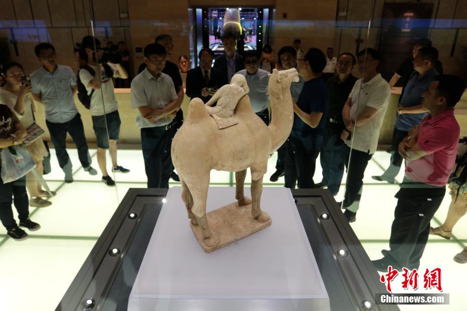 6月20日,西安,“丝路追梦——陕西国宝系列特展之骑驼胡人小憩俑”在陕西历史博物馆国宝厅面向公众开放。据介绍,此次展出的这件骑驼胡人小憩俑是已发现的众多骆驼俑之中形象最为生动的一件,它表现了骆驼在漫漫丝路上长途跋涉,于疲惫之中抖擞精神、驻足嘶鸣,而驼背上的“胡儿”怀揣梦想、枕臂小憩、憨态可掬的生动瞬间。 中新社记者 张远 摄