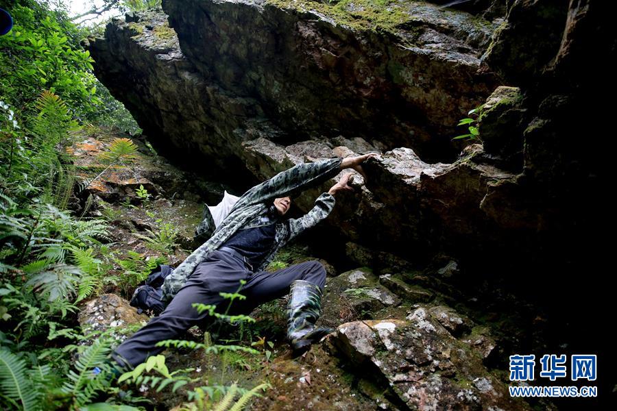 6月20日,在广西柳州市融水苗族自治县汪洞乡罗洞村,村民韦锦军爬上悬崖前去采割夏至蜜。 时下,正是夏至蜜成熟的季节,广西柳州市融水苗族自治县汪洞乡罗洞村的蜂农们忙着采割夏至蜜,大山里一片忙碌景象。 新华社发(龙涛 摄)