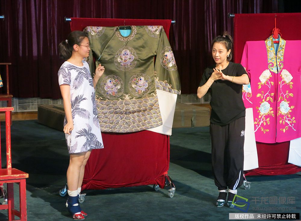 6月20日,“百名新秀下基层 普及京剧看我行”活动在北京京剧院举行。图为演员王倩倩表演跷功。千龙网记者纪敬摄