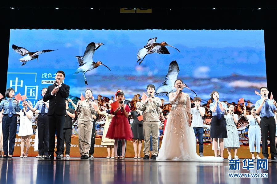 6月21日,福州市民代表在2019“宜夏”榕城文化艺术季开幕式上合唱。 当日,2019“宜夏”榕城文化艺术季在福州拉开帷幕。艺术季将串起6项大型文化艺术赛事、8项原创文化活动、36项精品文艺演出、41项优秀传统文化主题体验活动、40项百场次公益性文化惠民活动,在炎炎夏日为市民送去文化大餐。 新华社记者姜克红摄