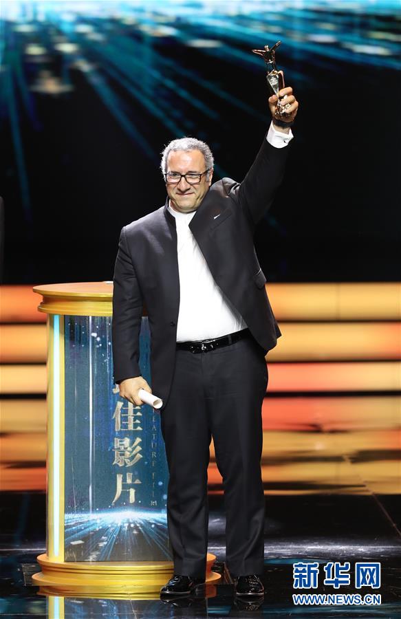 6月23日,伊朗影片《梦之城堡》导演雷萨·米尔卡里米在台上领奖。 当日,第22届上海国际电影节揭晓金爵奖。伊朗影片《梦之城堡》揽得最佳影片、最佳导演和最佳男演员三项大奖。评委会大奖与最佳女主角奖则归属格鲁吉亚、俄罗斯、瑞典合拍影片《呼吸之间》。 新华社记者 丁汀 摄
