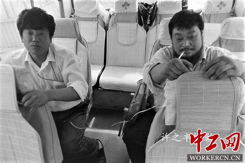 1999年6月中旬,北京长安街上有着招手即停的小公共。数次跟随一辆准运号为19041小公共,司机马全义售票员李国庆热情为乘客服务,在从公主坟到八王坟总长14.9公里的运营途中,哥俩轮流给乘客猜谜语、背台词、讲笑话,整个车厢充满欢声笑语,被人们称之为长安街上“快乐小巴”至今记忆犹新。图为作者20年前乘坐“快乐小巴”时的摄影记录。工人日报-中工网许之丰摄影报道