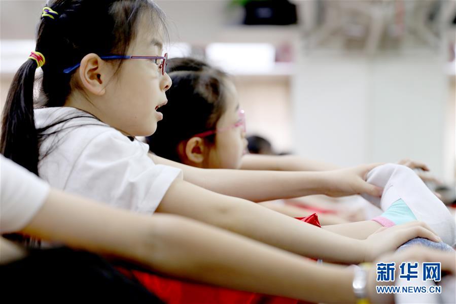 在声辉粤剧推广协会排练室里,孩子们在压腿(6月8日摄)。声辉粤剧推广协会成立于2003年,是香港重要粤剧艺术团体之一,致力于向青少年推广粤剧。协会目前有两个初班,3个中班,一个青少年班。粤剧又称“广东大戏”,表演技艺包括“唱做念打”,即唱功、身段、台词、武打,主要流行于广东、广西和香港、澳门等地区。2009年,粤剧被列入联合国教科文组织人类非物质文化遗产代表作名录,今年正逢十周年。新华社记者 吴晓初 摄