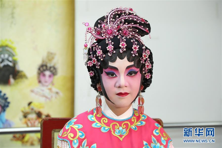 粤剧小演员陆瑞徽饰演折子戏《艳曲醉周郎》里的小乔(6月8日摄)。声辉粤剧推广协会成立于2003年,是香港重要粤剧艺术团体之一,致力于向青少年推广粤剧。协会目前有两个初班,3个中班,一个青少年班。粤剧又称“广东大戏”,表演技艺包括“唱做念打”,即唱功、身段、台词、武打,主要流行于广东、广西和香港、澳门等地区。2009年,粤剧被列入联合国教科文组织人类非物质文化遗产代表作名录,今年正逢十周年。新华社记者 吴晓初 摄