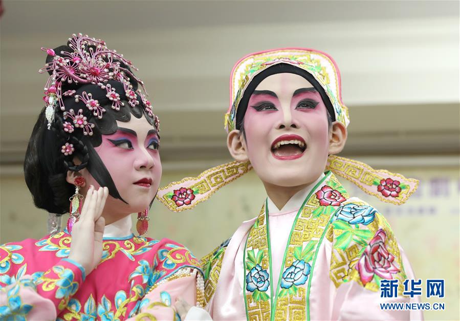 陆瑞徽(左)和利文喆在表演折子戏《艳曲醉周郎》(6月8日摄)。声辉粤剧推广协会成立于2003年,是香港重要粤剧艺术团体之一,致力于向青少年推广粤剧。协会目前有两个初班,3个中班,一个青少年班。粤剧又称“广东大戏”,表演技艺包括“唱做念打”,即唱功、身段、台词、武打,主要流行于广东、广西和香港、澳门等地区。2009年,粤剧被列入联合国教科文组织人类非物质文化遗产代表作名录,今年正逢十周年。新华社记者 吴晓初 摄