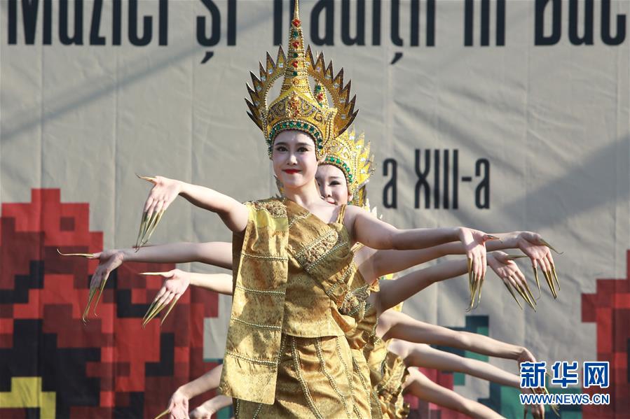 6月23日,在罗马尼亚布加勒斯特,来自北京舞蹈学院的演员在罗马尼亚国际民间音乐和传统艺术节上表演。 罗马尼亚国际民间音乐和传统艺术节23日在布加勒斯特闭幕。为期3天的艺术节吸引了罗马尼亚、黑山、塞尔维亚、斯洛伐克、乌克兰和中国等国家和地区的艺术家参加。 新华社发(彼得雷斯库摄)