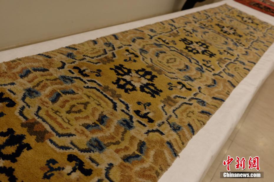 6月24日,由已故德国收藏家马丁·波斯特无偿捐赠的45件中国古代艺毯正式入藏上海博物馆。这批珍贵艺毯是波斯特自20世纪80年代起在中国收集所得,有坐垫毯、马鞍毯、坐禅毯等多个种类,含七珍八宝、暗八仙、海水江崖等多种纹样。波斯特希望让更多市民有机会目睹这些不可多得的中国地毯,因此在遗嘱中作出了将上述藏品无偿捐给上海博物馆的决定。 王笈 摄