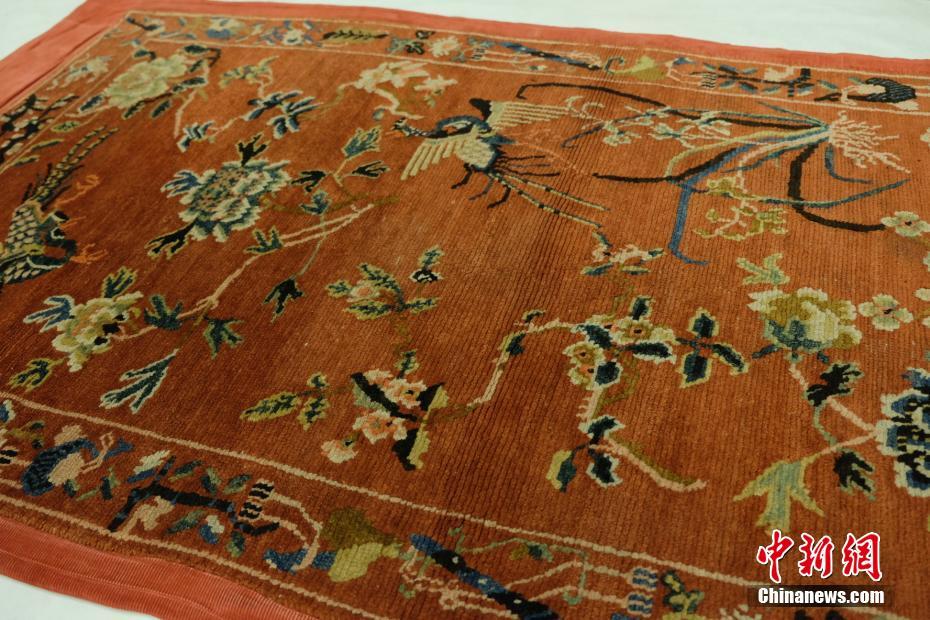 6月24日,由已故德国收藏家马丁·波斯特无偿捐赠的45件中国古代艺毯正式入藏上海博物馆。这批珍贵艺毯是波斯特自20世纪80年代起在中国收集所得,有坐垫毯、马鞍毯、坐禅毯等多个种类,含七珍八宝、暗八仙、海水江崖等多种纹样。波斯特希望让更多市民有机会目睹这些不可多得的中国地毯,因此在遗嘱中作出了将上述藏品无偿捐给上海博物馆的决定。 王笈 摄