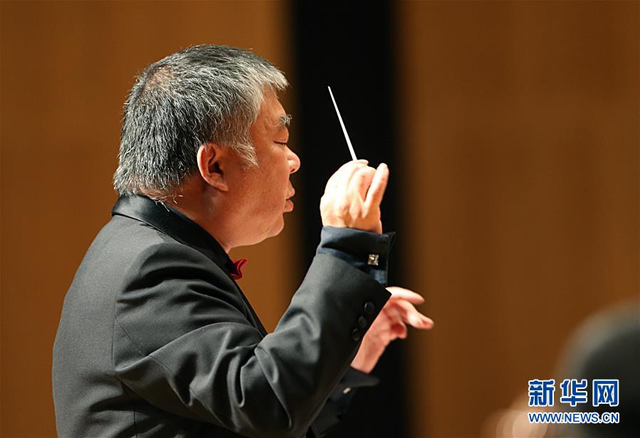 6月24日,指挥家邵恩指挥大型原创交响乐《长城》。 当日,大型原创交响乐《长城》在北京国图艺术中心首演。这部作品由八个部分组成,八位中国中青年作曲家参与创作,从不同角度展现长城的古今风貌及人民对美好未来的展望和畅想。 新华社发(韩晓雨 摄)