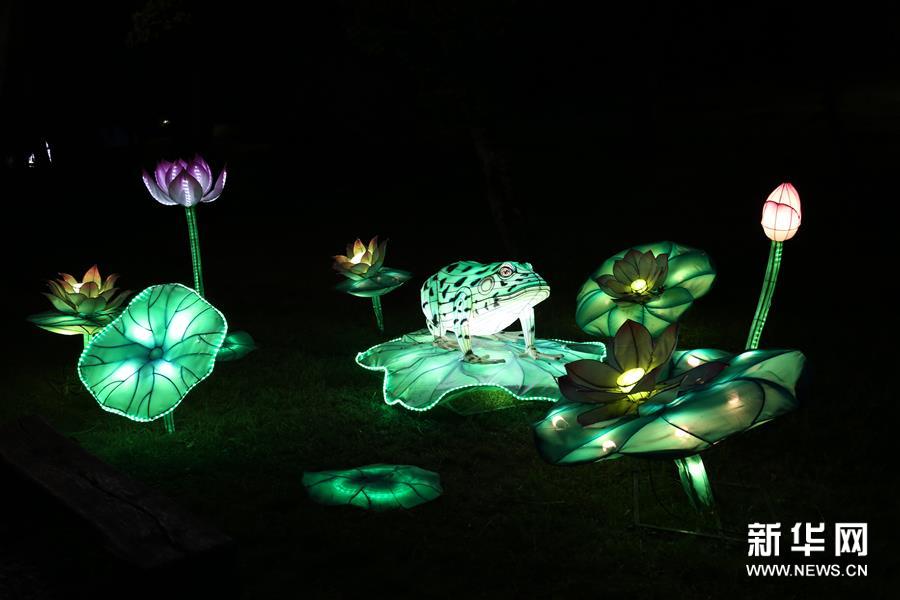 这是6月23日在罗马尼亚锡比乌市阿斯特拉露天博物馆拍摄的自贡彩灯展。 新华社记者 陈进 摄