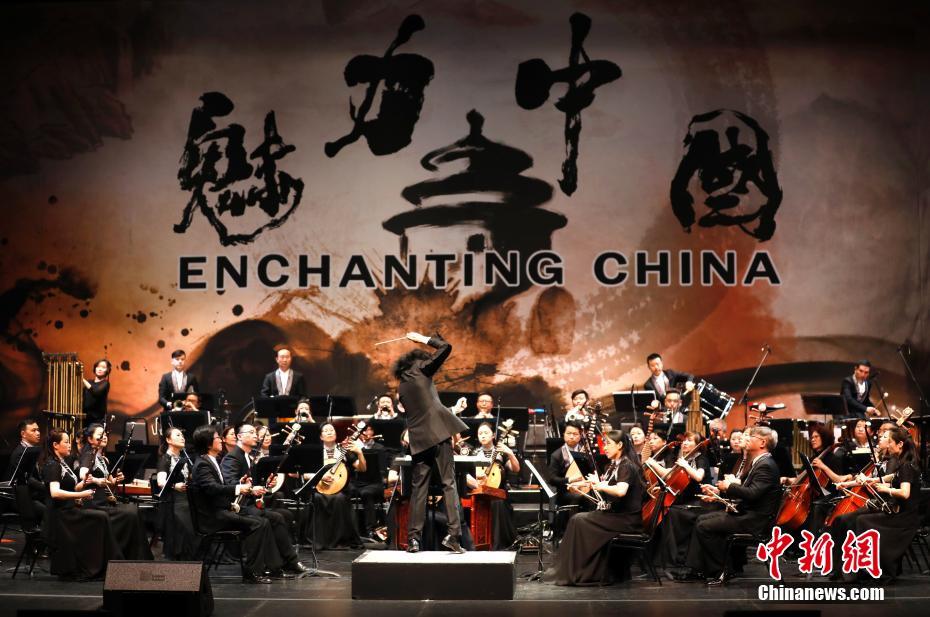 当地时间6月24日,由中国广播民族乐团打造的“魅力中国”民族交响音乐会在美国旧金山上演。指挥家彭家鹏、胡琴演奏家姜克美、小提琴演奏家吕思清以及梅派青年京剧演员张馨月等,与中国广播民族乐团共同为当地观众奉献了一场艺术盛宴。民族管弦乐《国风》、京剧唱段《梨花颂》以及小提琴协奏曲《梁山伯与祝英台》等极具中国传统特色的节目吸引了当地华人华侨以及美国民众的关注。中新社记者 刘关关 摄