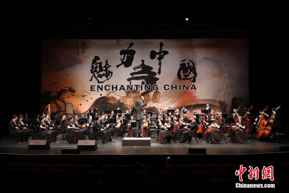 当地时间6月24日,由中国广播民族乐团打造的“魅力中国”民族交响音乐会在美国旧金山上演。指挥家彭家鹏、胡琴演奏家姜克美、小提琴演奏家吕思清以及梅派青年京剧演员张馨月等,与中国广播民族乐团共同为当地观众奉献了一场艺术盛宴。民族管弦乐《国风》、京剧唱段《梨花颂》以及小提琴协奏曲《梁山伯与祝英台》等极具中国传统特色的节目吸引了当地华人华侨以及美国民众的关注。中新社记者 刘关关 摄