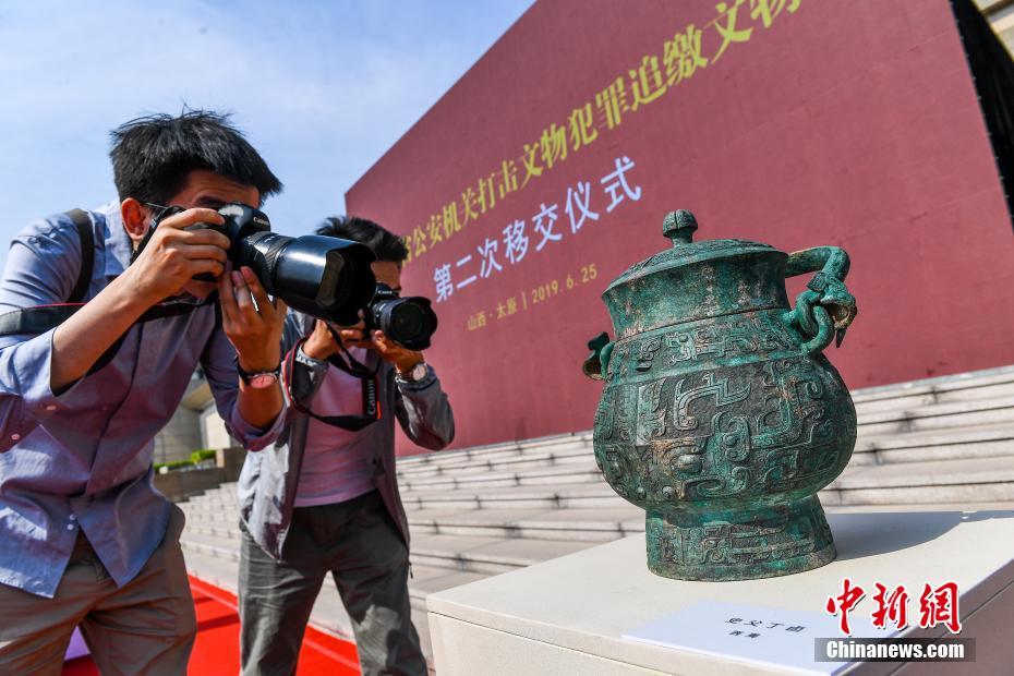 6月25日,山西公安机关在山西博物院举行打击文物犯罪追缴文物第二次移交仪式,当地公安机关向文物部门移交文物12780件,其中,国家一级文物55件、二级文物114件、三级文物420件。山西公安机关通过两次正式移交,已向文物部门公开移交涉案文物25413件,这些文物中的精品,将作为“山西青铜博物馆”陈展主体,很快向社会公众公开展示。中新社记者 武俊杰 摄