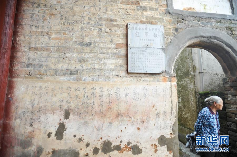 这是刻在上朔村徐氏公祠正门墙上的《当红军》(6月23日摄)。 新华社记者 李任滋 摄