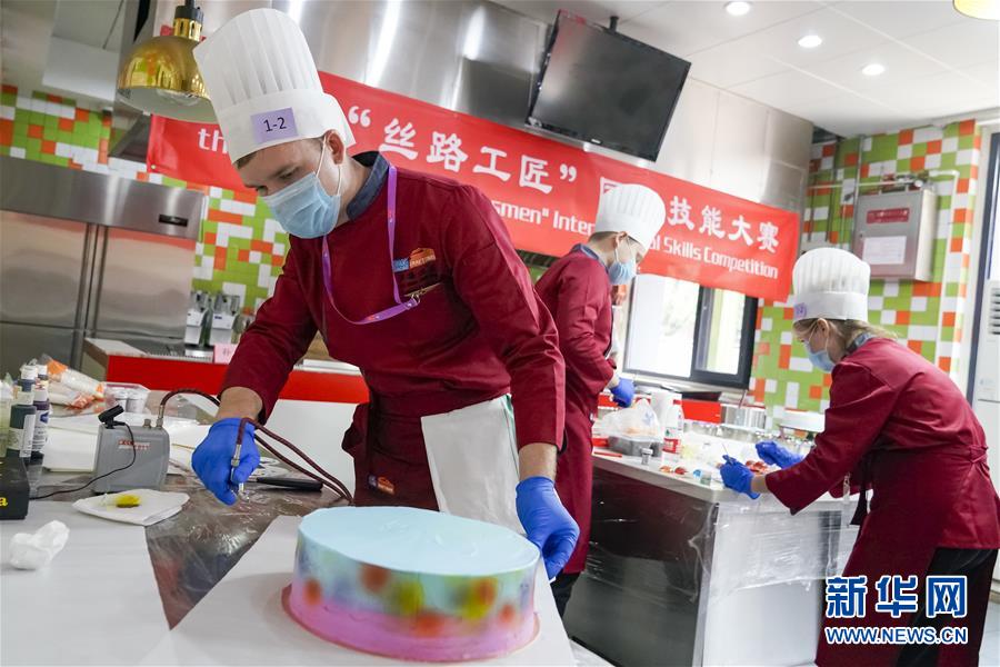 6月26日,俄罗斯选手参加蛋糕裱花比赛。 当日,首届“丝路工匠”国际技能大赛在北京正式启动,来自中国、俄罗斯、乌兹别克斯坦等7个国家26所职业院校的123名选手同台竞技,参加西式烹调、西点烘焙、蛋糕裱花、幼儿主题画、幼儿歌曲弹唱5个项目的比赛。 新华社记者 沈伯韩 摄