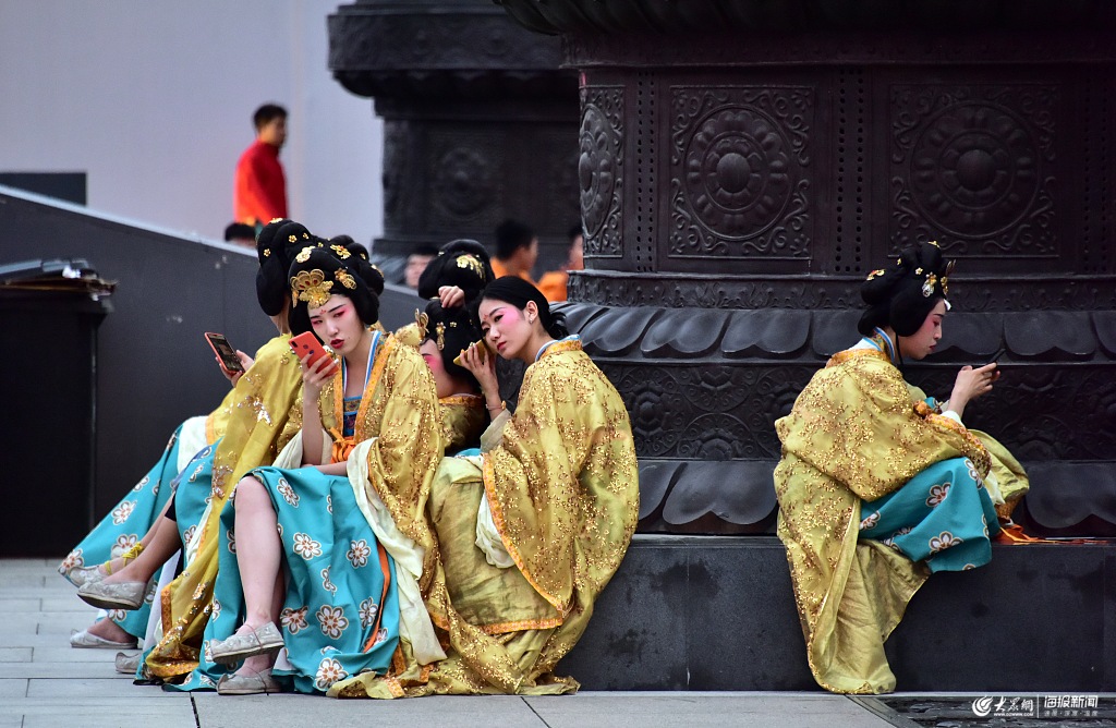 2019年6月24日晚,西安大唐不夜城。参加《再回长安》的演员们正在备场。