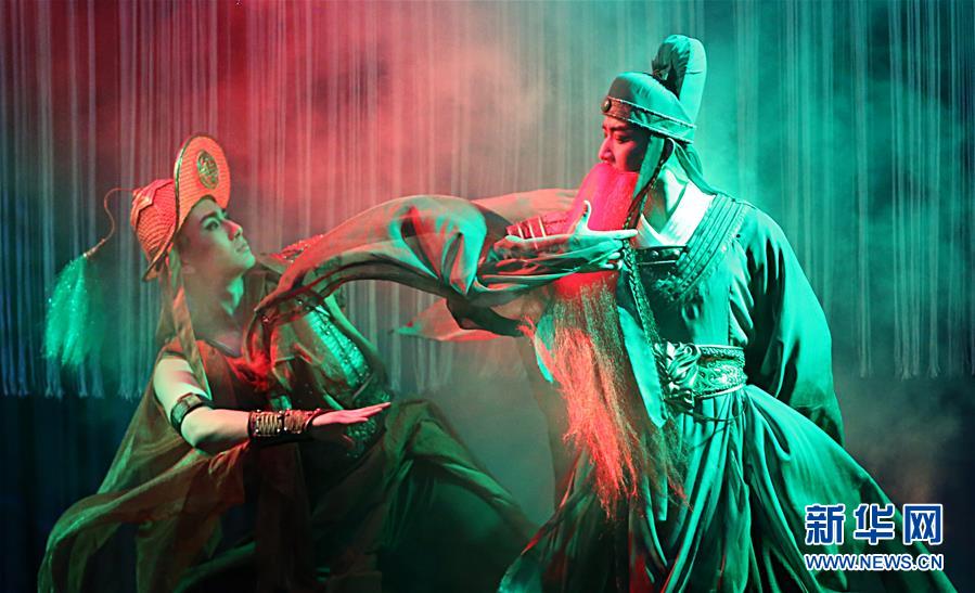 6月30日,演员陈军汝(右)与吕光涛在表演《单刀会》之《刀会》。 新华社发(雒圆摄)