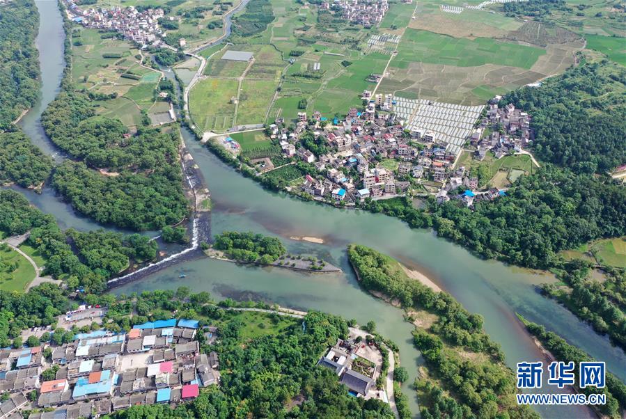 这是6月30日无人机拍摄的广西兴安县灵渠及周边景色。 位于广西兴安县的灵渠是世界上保存最完整的古代水利工程之一,至今仍发挥着农田灌溉、排洪泄洪作用。2018年,灵渠入选世界灌溉工程遗产名录。 新华社记者 陆波岸 摄