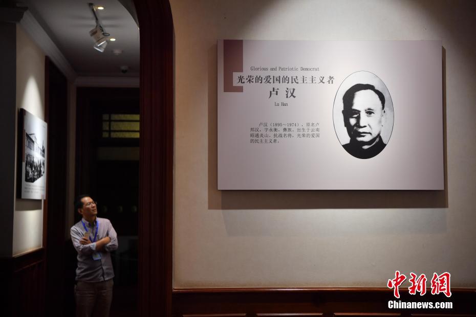 7月1日,“云南起义纪念馆”内的卢汉生平简介。当日,著名抗日爱国将领、云南起义领导者卢汉的旧宅——卢汉公馆经过修缮,设立“云南起义纪念馆”正式面向社会开放,再现卢汉的生平事迹和云南起义往事。卢汉公馆位于昆明市翠湖旁,是卢汉的私人园林式住所,占地面积约5664平方米,包括新老两个公馆,是昆明目前保存最好、体量最大的法式建筑。同时,该地也是见证了云南起义的重要历史遗存。1949年12月9日,卢汉在此将国民党第八军军长李弥等人扣押,当日午夜宣布起义。中新社记者 刘冉阳 摄