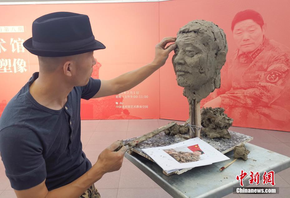 7月1日,中国美术馆在本馆艺术教育空间举办“中国美术馆为王继才塑像”雕塑工作坊活动,邀请雕塑艺术家为守卫孤岛32年的已故全国优秀共产党员王继才同志塑像。这是中国美术馆雕塑工作坊第八期,旨在将艺术创作与公共教育相融合,以弘扬时代新风,讴歌先进人物。全国优秀共产党员王继才(1960—2018),男,出生于江苏省连云港市灌云县。2003年10月加入中国共产党,曾任江苏省灌云县开山岛民兵哨所原所长、开山岛村党支部原书记。自1986年起和妻子王仕花二人克服常人难以想象的困难,守卫孤岛整整32个年头(截止2018年)。2014年,王继才夫妇被评为全国“时代楷模”。2018年7月27日,王继才在执勤时突发疾病,经抢救无效去世,年仅58岁。中新社记者 杜洋 摄
