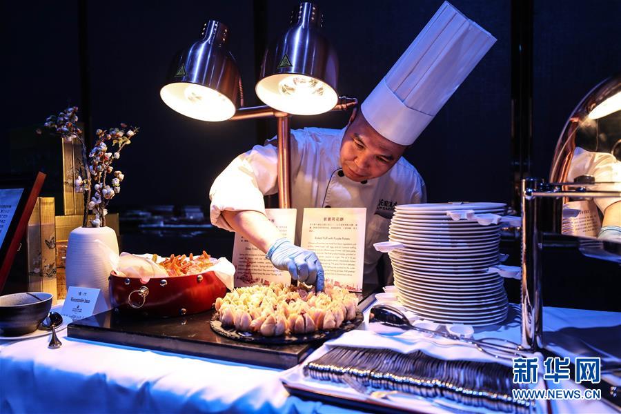 7月2日,来自广州的厨师在为嘉宾准备广东美食。 当晚,2019夏季达沃斯论坛举办“广州之夜”活动。活动中主办方通过展示城市形象、推荐当地美食、特色文艺演出等方式,与来自全球的参会嘉宾互动交流、共话未来。 新华社记者 潘昱龙 摄